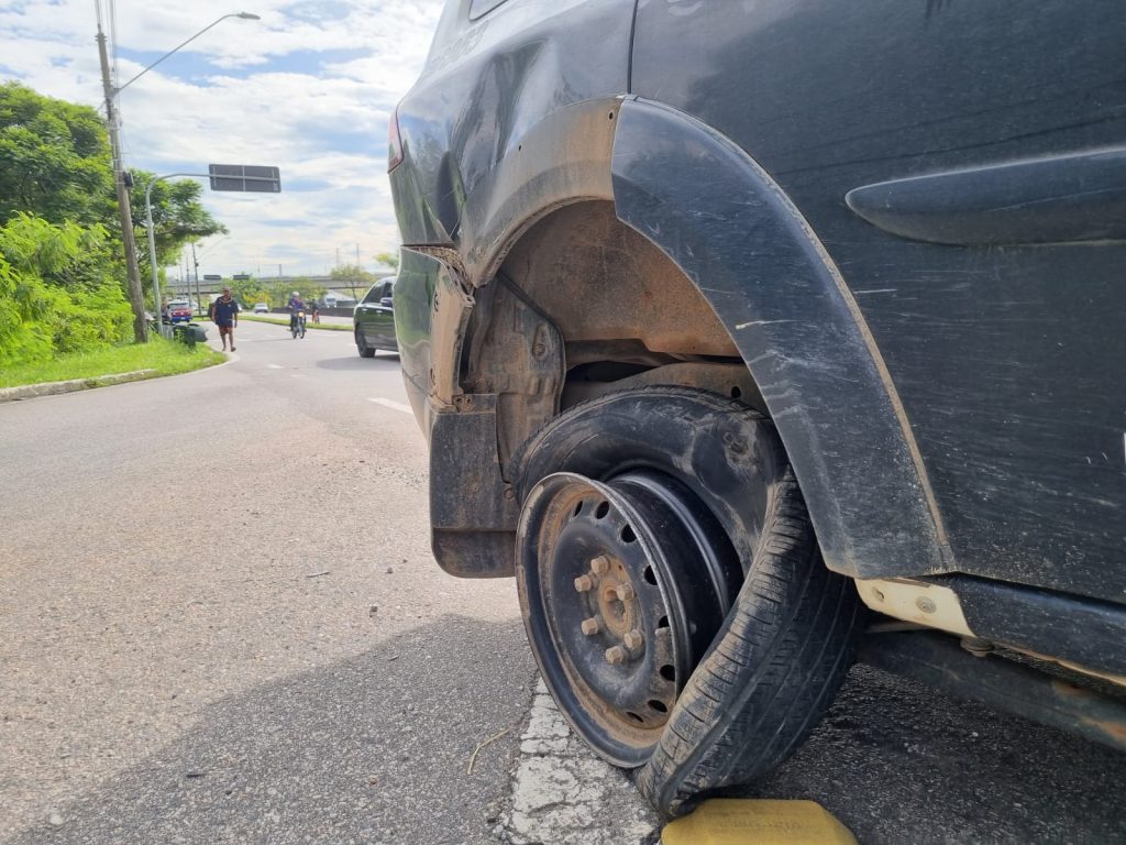 O pneu da viatura da Polícia Civil estourou na curva e o policial perdeu o controle do carro e batendo no guard rail. Apesar do forte impacto, nenhum outro veículo foi atingido. O policial não se feriu.