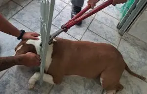 Ao chegar ao local, os bombeiros constataram que a cachorra estava a aproximadamente cinco metros dentro da tubulação. Diversas tentativas de resgate foram realizadas, mas, diante da dificuldade de acesso, foi necessária a confecção de um instrumento improvisado, com uma haste longa e um laço na extremidade, para alcançar o animal.