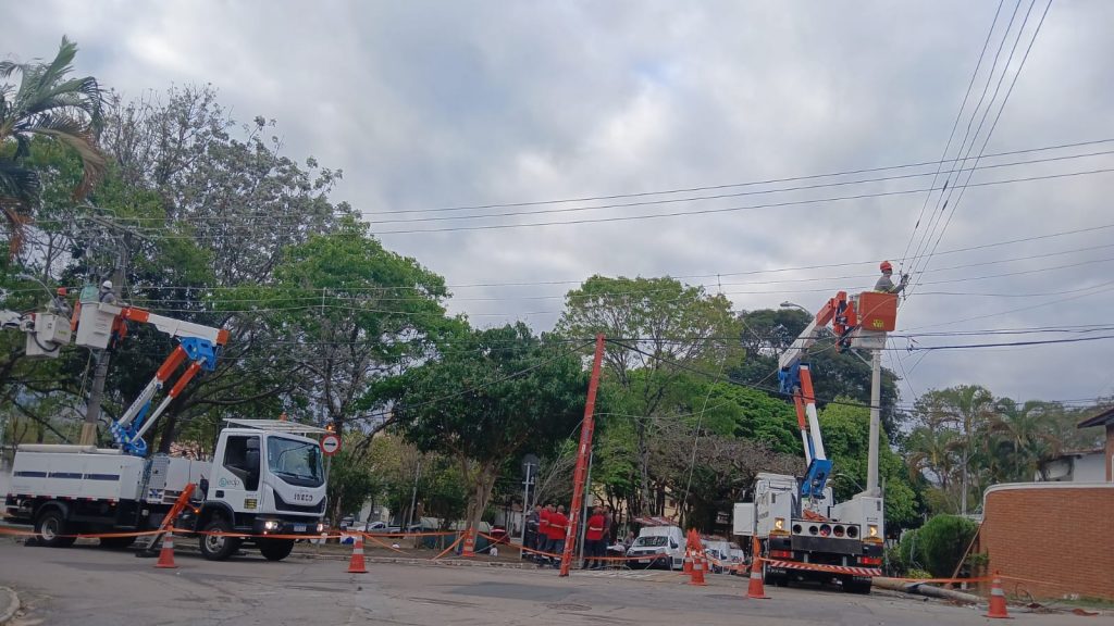Por questões de segurança o fornecimento de energia seguiu interrompido para os clientes do entorno. Equipe da EDP atua no local para restabelecer o fornecimento de energia e substituir os postes danificados.