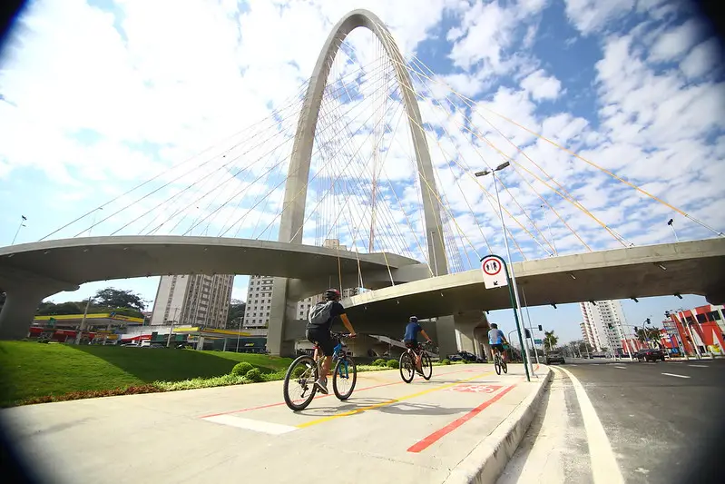 A Prefeitura de São José dos Campos entregou neste domingo (9), para uso dos ciclistas, a ciclovia que integra o complexo viário da ponte estaiada. A ciclovia irá conectar as regiões central, oeste e sul, permitindo uma nova opção de deslocamento para quem mora, trabalha ou escolhe pedalar por estas regiões. A ciclovia tem 3,3 quilômetros de extensão.