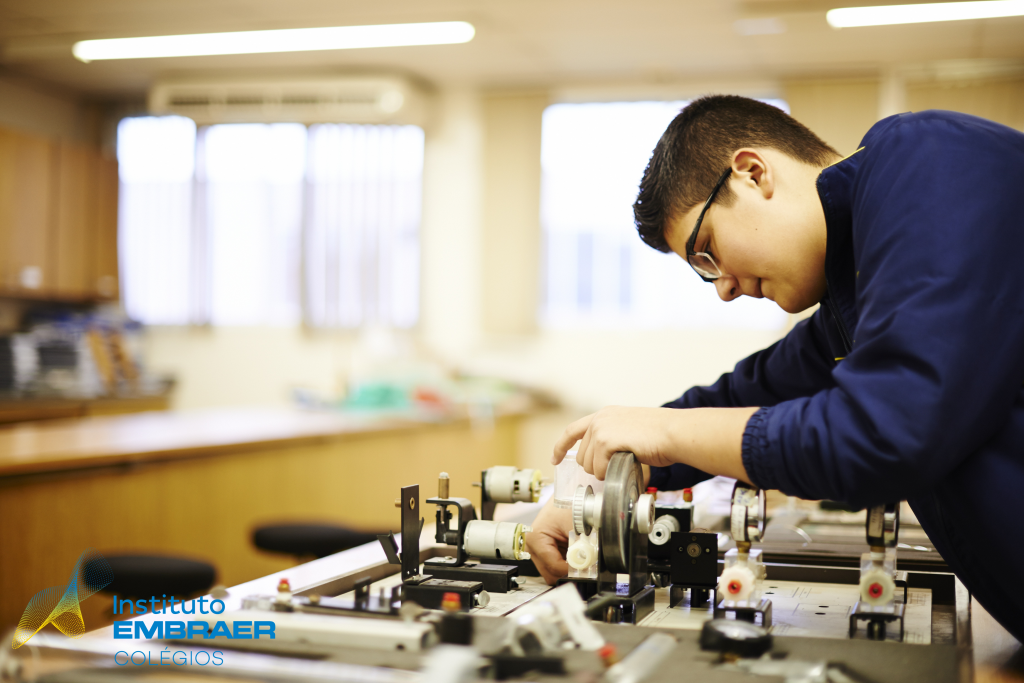 O Colégio Embraer já oferece ensino integral com 45 horas/aula por semana e traz uma novidade para o currículo de 2021: a antecipação do modelo de novo Ensino Médio, uma estrutura moderna e flexível de aprendizagem, com a qual o aluno escolhe parte do que vai estudar, sem perder a carga horária das matérias básicas e essenciais para sua formação.