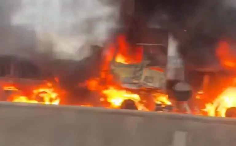 Colisão e incêndio entre carretas paralisam a Via Dutra em Pinda