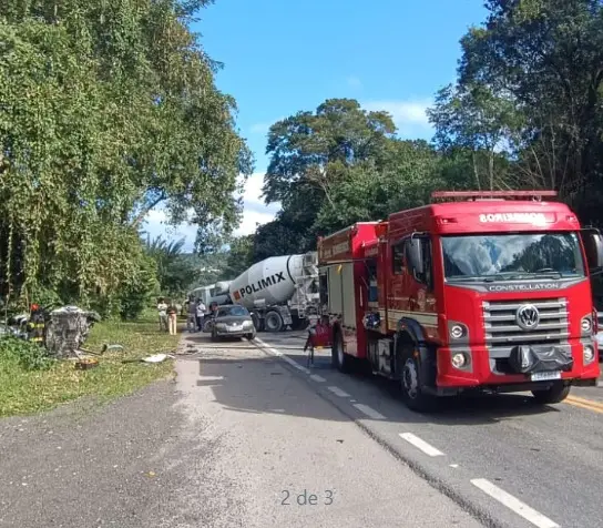 Um acidente em Caraguatatuba deixou uma vítima morta e outras duas feridas na manhã desta segunda-feira (21), após uma colisão entre carro e caminhão na rodovia Governador Mário Covas (BR-101), na altura do km 85+900, no bairro Mococa. A ocorrência mobilizou equipes do Corpo de Bombeiros, SAMU, Policiamento Rodoviário e Departamento de Estradas de Rodagem (DER).