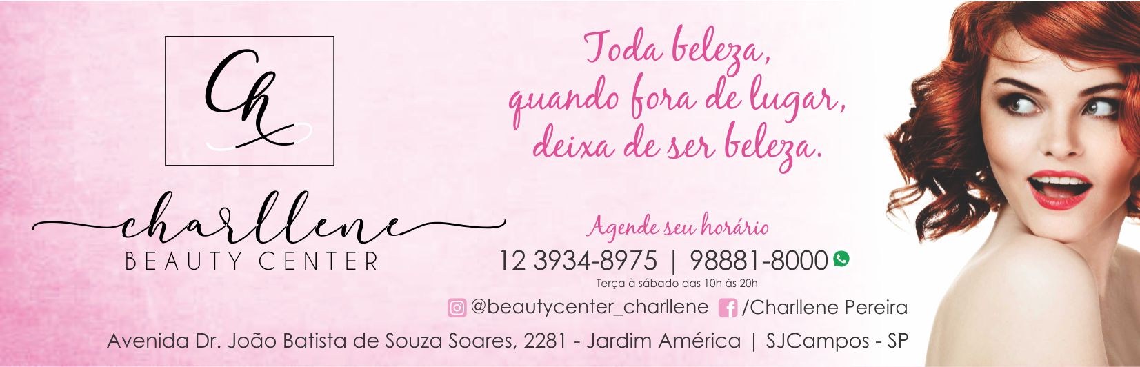 “Todas estão convidadas a vir nos conhecer. Oferecemos diversos tratamentos com o que há de melhor para cabelos, unhas, depilação, maquiagem, micropigmentação, extensão de cílios, maquiagem e massagem, dentre outros serviços”, afirma a proprietária, Charllene Pereira. Ela conta que o atendimento personalizado faz toda a diferença nos resultados.
