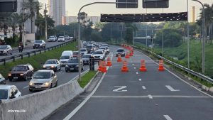 Após a colisão, a faixa da esquerda foi interditada para prestar socorro à vítima. O trafego no local já segue livre.