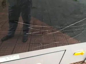 Parte externa do exemplar do Veículo Leve sobre Pneus sofreu avarias após ataque de vândalos em frente à Igreja Matriz