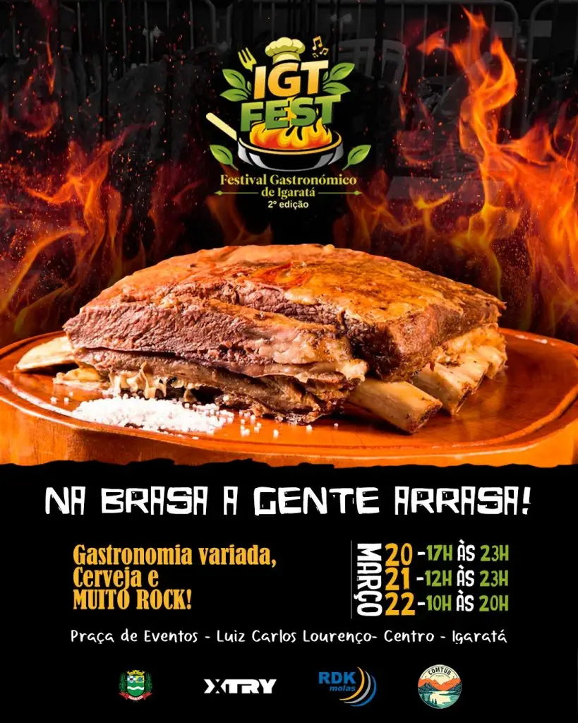Entre os dias 20 e 22 de março, a cidade de Igaratá-SP (a 40 quilômetros de São José dos Campos) recebe a 2ª edição do IGT FEST – Festival Gastronômico de Igaratá, na Praça de Eventos da cidade. O festival reúne gastronomia variada, música ao vivo e atrações para toda a família, prometendo movimentar o turismo e o lazer na região durante todo o final de semana.