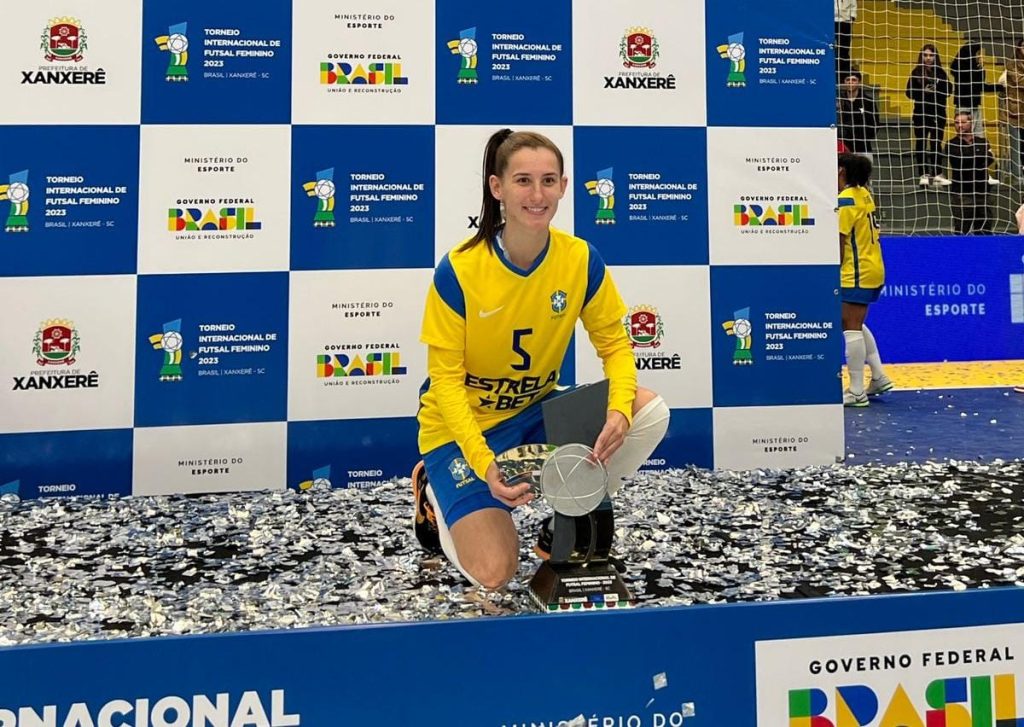 Em uma conquista notável, Jana Godoi, jogadora do São José Futsal Feminino, garantiu o título de campeã para a seleção brasileira no prestigioso Torneio Internacional de Futsal Feminino no último domingo (14). Jana desempenhou um papel fundamental na campanha invicta e sem sofrer gols de sua equipe ao longo da competição realizada em Xanxerê-SC.