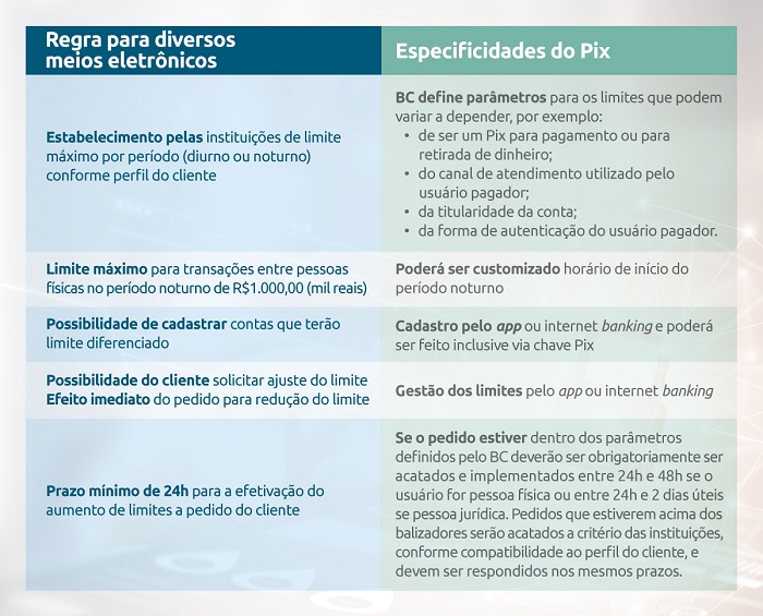 Estabelecimento de obrigatoriedade de que os mecanismos adotados pelas instituições sejam no mínimo iguais aos implementados pelo BC. Também haverá a necessidade de as instituições definirem procedimentos de identificação e de tratamento de casos em que ocorram excessivas consultas de chaves Pix, que não resultem em liquidação ou casos de chaves inválidas.