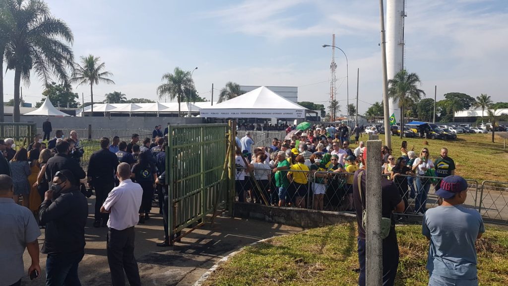 10h10 – Ex-ministro do Meio Ambiente, Ricardo Salles chega ao local e tira fotos com os presentes.