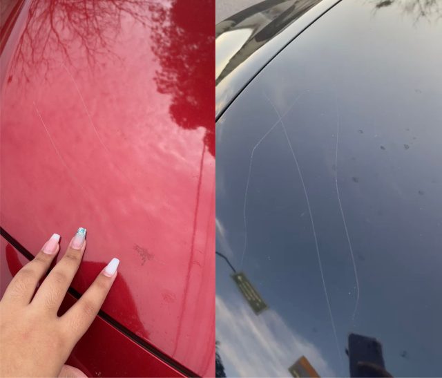 Frequentadores da rua São Caetano do Sul, no Jardim das Indústrias, zona oeste de São José dos Campos, têm sofrido com um grande transtorno enquanto os seus carros permanecem estacionados pela via. Grandes riscos têm aparecido nos capôs e laterais.
