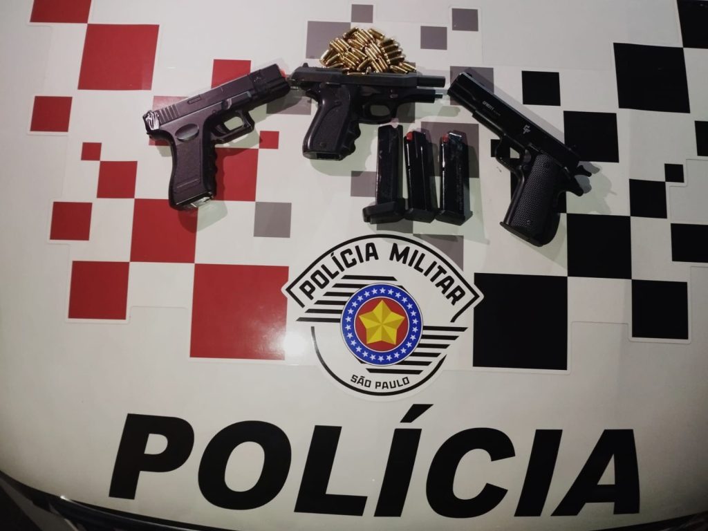 Ao perceber a presença policial, o indivíduo em questão fugiu pelos telhados e não foi localizado. Uma busca foi realizada dentro da residência, resultando na apreensão de uma pistola PT58S calibre 380, alimentada com um carregador contendo 10 munições, além de dois carregadores adicionais com um total de 25 munições. Também foram encontrados dois simulacros de arma de fogo, modelo pistola.