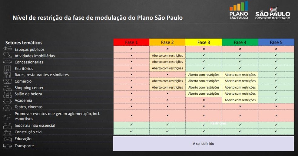 Fase 2, cor laranja: controle e atenção, já inicia flexibilização