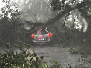 Queda de árvore atinge carro e provoca interdição total da rodovia SP-50, em São José dos Campos, após temporais nesta quinta-feira (29)