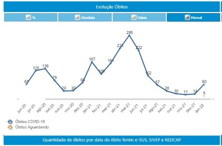 21 de janeiro – Homem, 91 anos, com comorbidades, sem registro de vacinação, no Hospital Antoninho da Rocha Marmo.