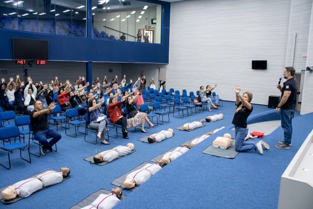 No início de agosto, 43 funcionários e colaboradores terceirizados da Câmara de São José dos Campos participaram de um treinamento oferecido pela Associação Salva Coração. O objetivo foi ensinar técnicas para situações de parada cardíaca e também a manobra de desobstrução em casos de engasgo (conhecida como manobra do abraço ou Heimlich).