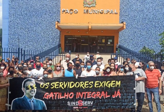 Em frente ao paço municipal servidores da prefeitura de São José dos Campos fizeram uma manifestação por um reajuste que considere a alta da inflação. O ato – organizado pelo Sindserv (Sindicato dos Servidores Municipais de São José dos Campos) – foi pacífico e realizado na quinta-feira (27). Na visão dos servidores, a Lei Complementar 173/2020, do governo federal, não dá amparo legal para o congelamento do gatilho salarial mantido pela prefeitura joseense. A lei federal proibiu reajustes para servidores até 31 de dezembro de 2021. Os protestantes alegam que a função da Lei do Gatilho é repor a perda inflacionária. “Triênios, quinquênios, sexta parte, em tempos normais, podem ser concedidos mesmo sem haver inflação, pois a regra é o tempo. Pode até haver deflação e eles terão de ser pagos. A Lei Complementar 173 congela o tempo para essas concessões, o que não tem nada a ver com inflação”, diz o documento divulgado entre os servidores. A luta da classe é pela recomposição salarial de quase 19%.