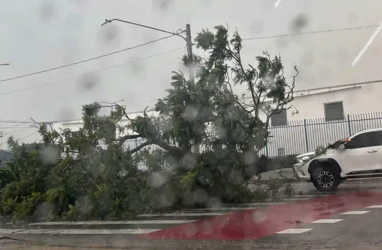 No Jardim América, árvores caíram nas imediações da Linha Verde, contribuindo para a lentidão no trânsito. Equipes da prefeitura já estavam no local tentando organizar o fluxo de veículos e iniciar a remoção dos obstáculos.