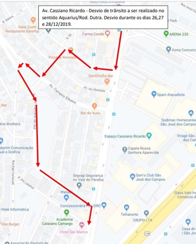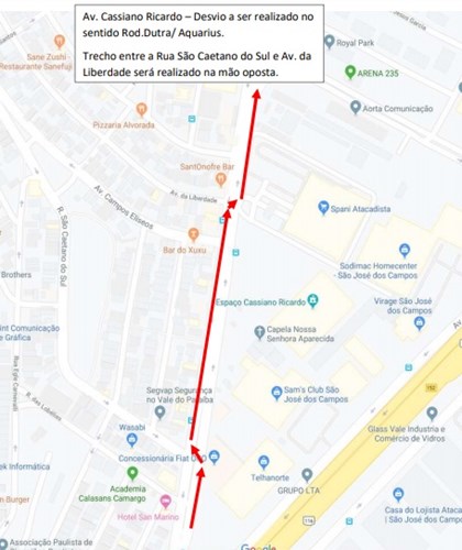 Um trecho da pista sentido centro da avenida Cassiano Ricardo, na região oeste de São José dos Campos, precisará ser interditado nos próximos dias 26, 27 e 28 para obras de drenagem.