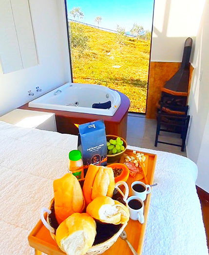 Acomodações novas e aconchegantes, reservadas, românticas, cozinha, lareira, hidro e vidros com generosas vistas do pôr do sol e estrelas, muito conforto. No Rooftop, espreguiçadeiras, fogo de chão, uma boa taça de vinho, ao lado de alguém especial apreciando a constelação. A sauna envidraçada proporciona um incrível pôr do sol, ao lado um amplo deck, uma acolhedora estrutura de pedras, fogo de chão, espreguiçadeiras, ambiente incrível.