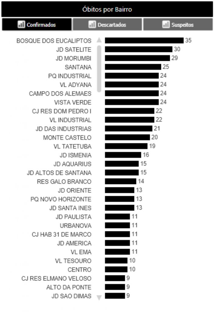 Gráfico abaixo mostra os bairros com mais casos de óbitos em São José