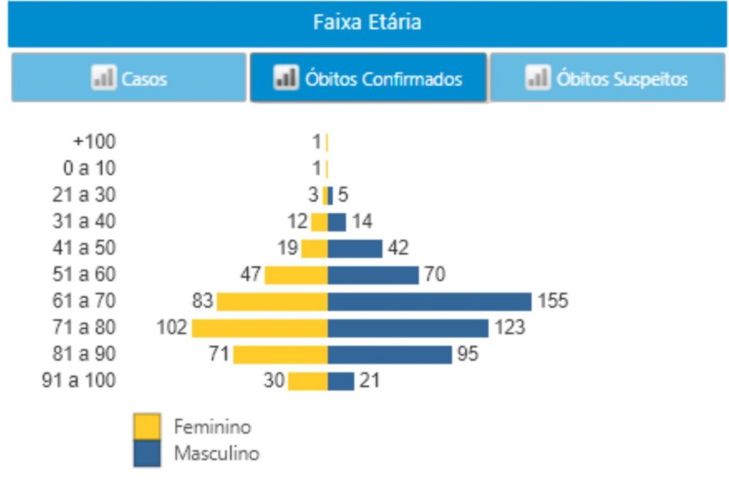 Gráfico abaixo mostra os óbitos por faixa etária em São José