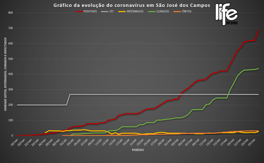 São José dos Campos registra 31 óbitos confirmados por covid-19 e 687 casos positivos.