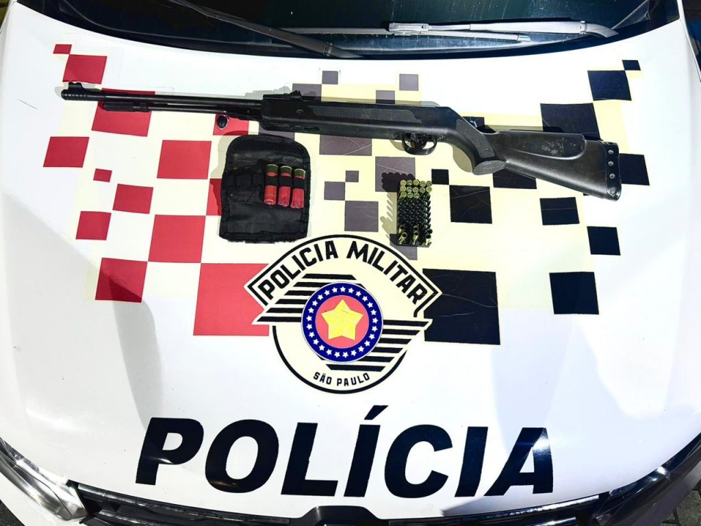 Durante a vistoria na residência a equipe localizou 13 munições intactas e seis deflagradas de calibre 38, além de três cartuchos deflagrados de calibre 12 e uma carabina de pressão.