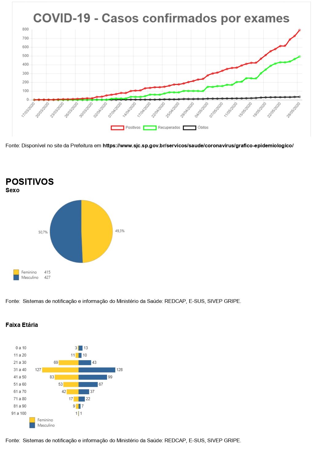 Como ocorre às sextas-feiras, o informe traz um detalhamento dos casos da doença no município. Há mais casos positivos entre os homens (50,7%) e a faixa etária predominante é entre 31 a 40 anos, com 255 casos.